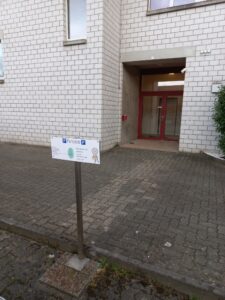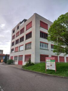 Vor dem 1. Wohnblock links in den Heckenweg einbiegen. Nun ist es das letzte Gebäude auf der linken Seite.